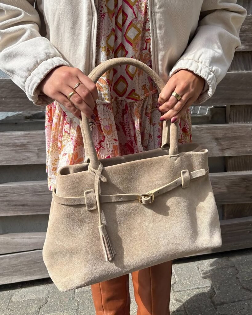 I can’t even tell you how many times people have stopped me to ask about my chocolate suede top-handle tote from Parisa Wang. And every time, I’m like, “wait till you hear the price…” because it’s kinda wild for the quality you’re getting. The brand uses the same tanneries as big luxury names like Prada and The Row, but the bags are still super accessible — total affordable luxury handbag moment.