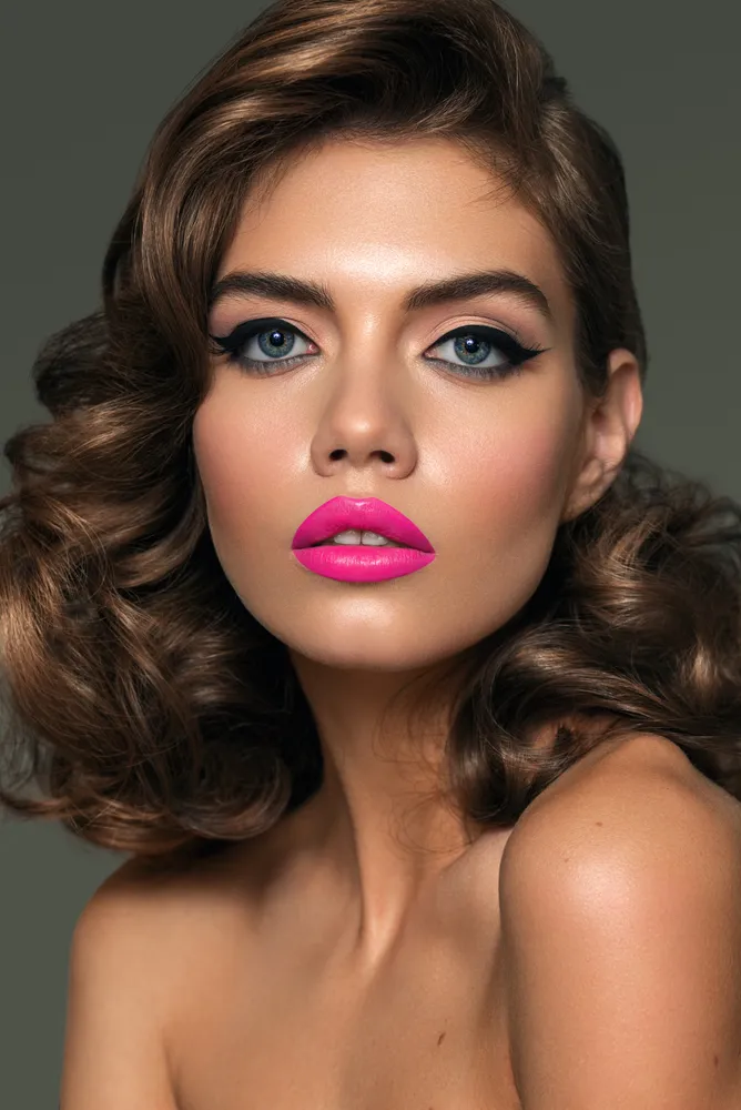 And the glossy brunette color? Obsessed. It catches the light in the prettiest way and adds so much richness, like premium-salon-color energy. Paired with bold liner and a bright pink lip, it’s giving old-school movie star meets modern confidence — classic, dramatic, and absolutely luxe.