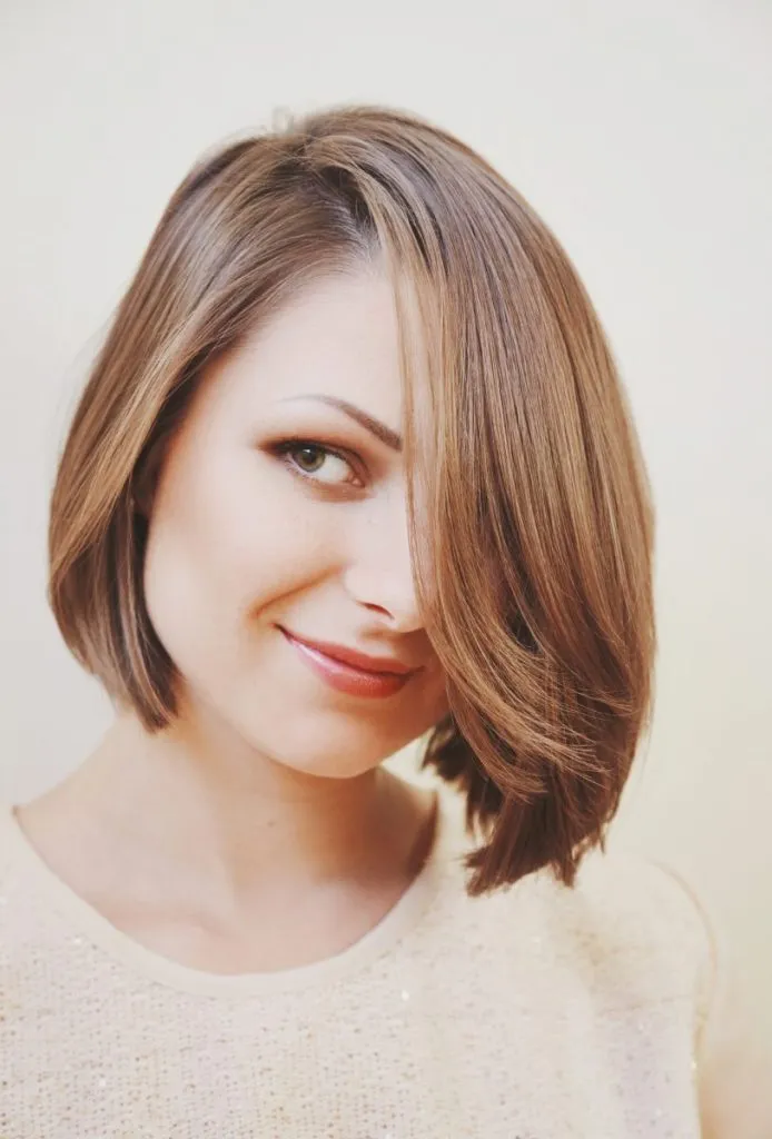 This cut is literally the definition of quiet luxury — simple, refined, and never trying too hard. The deep side part and those smooth, tucked-under ends give it that super polished “old money” vibe, while the soft chestnut tone keeps everything looking rich, warm, and totally natural.